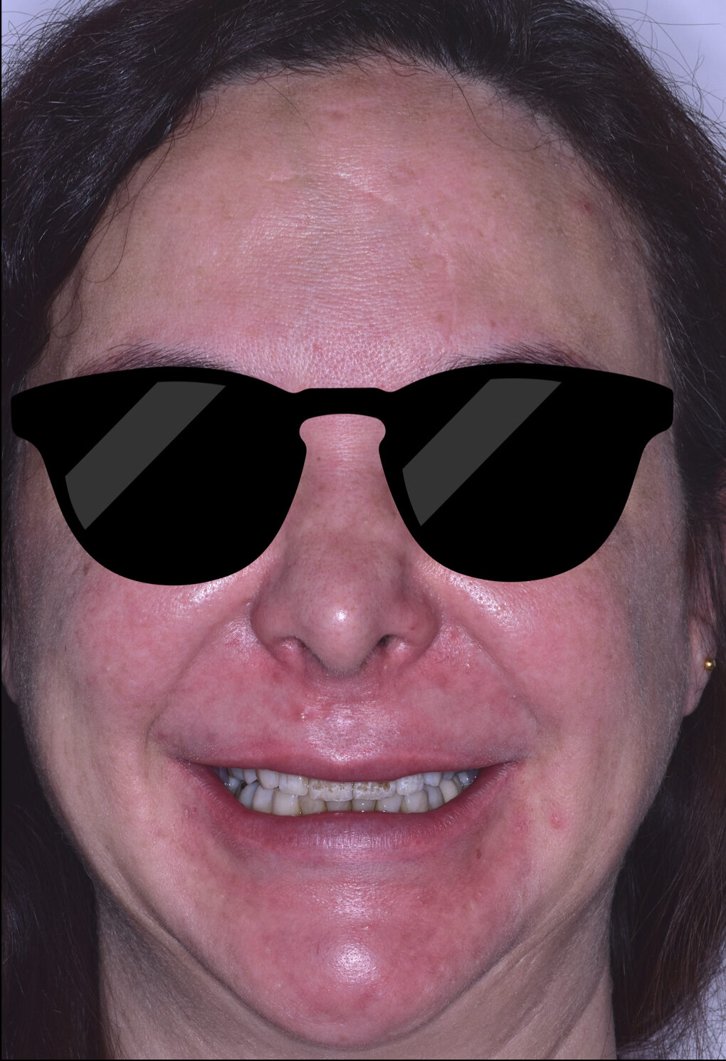 La paciente acude a consulta con una alta demanda estética, ya que lleva toda la vida con las manchas en los dientes, y le cuesta sonreír debido al color de sus dientes.