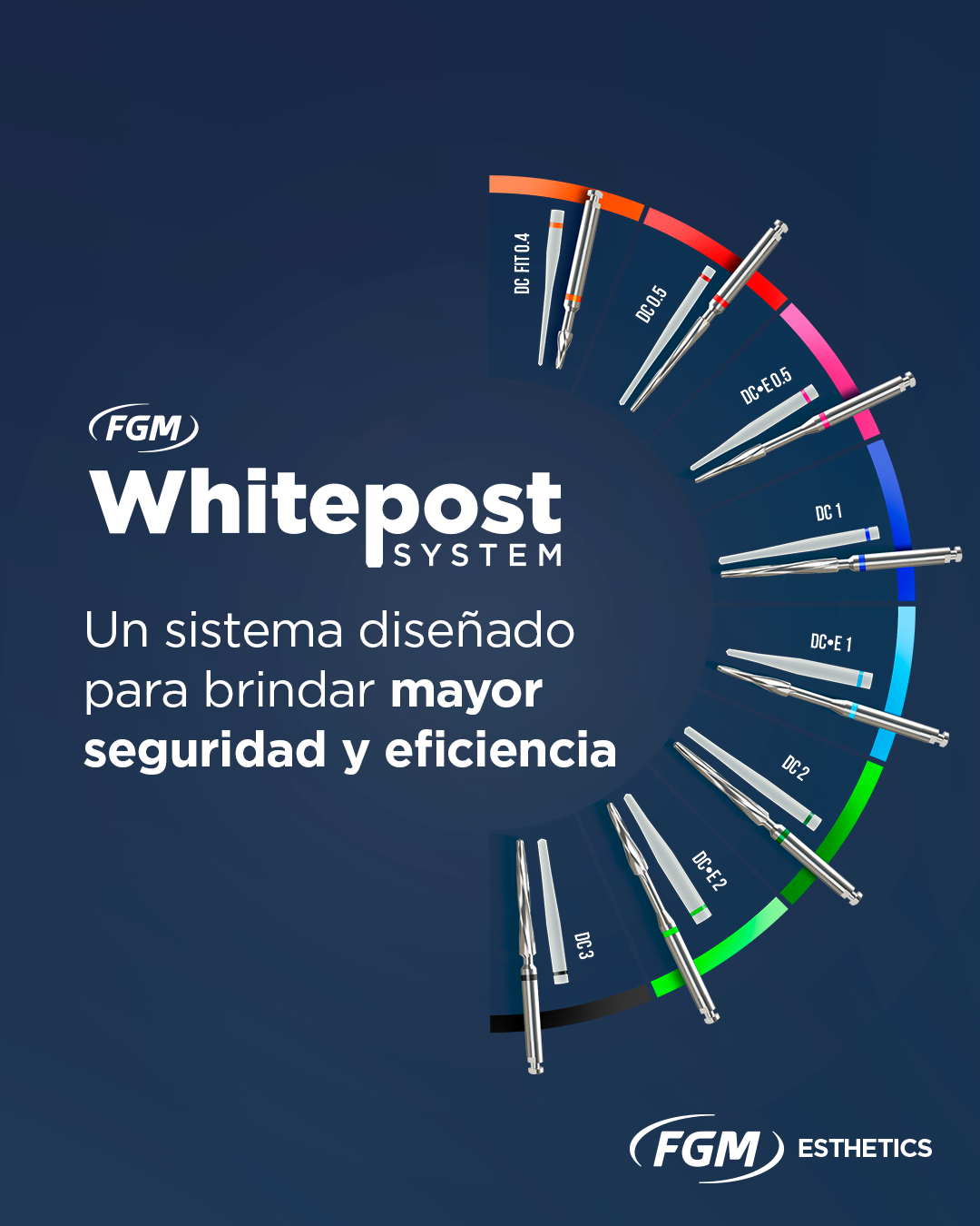 Whitepost System ha sido concebido para integrarse de forma armoniosa dentro del canal radicular y del complejo restaurador, aportando no solo resistencia mecánica, sino también una apariencia translúcida que facilita la estética final, especialmente cuando se utilizan materiales libres de metal o cerámicas de alta translucidez. Su diseño moderno responde a las necesidades de la odontología actual, donde la durabilidad y la estética deben ir siempre de la mano.